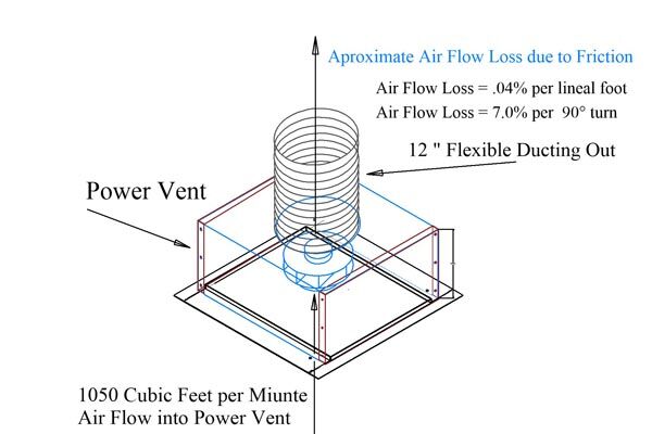 The friction losses in the top 3 rows are when flexible duct work is used. Because of the way it is constructed the friction is nearly doubled compared to smooth sheet metal ducting. While metal ducting is more costly, it is also twice as efficient. We urge you to take all of these matters into account as you plan your clean air project.