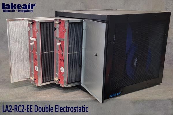 Engineered for long-term reliability and sustainability, the unit features washable permanent filters and a massive collecting area of over 26,000 square inches, which significantly reduces ongoing maintenance costs. Proudly Made in the USA, the LA2-RC2-EE offers flexible installation options, including eye-bolts for ceiling suspension or an optional mounting bracket for secure wall anchoring.