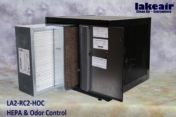 LA2-RC2-HOC uses a five-chamber carbon filter containing 6 pounds of carbon. The air is pulled through 4.5 inches of carbon, which allows the odors to maintain contact with the carbon crystals.