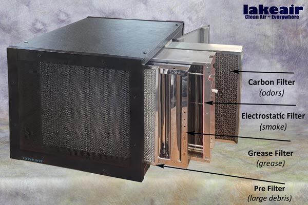 The LA2-RC2 -Kitchen commercial kitchen air purifier has everything your commercial kitchen needs. Kitchen air is some of the most difficult air to clean. The air in a kitchen can have any number of different challenges. Smoke and suspended oil are leading problems. The LA2-RC2-Kitchen has specialized filters for each. Odors can be a dilemma of their own and the 3 chamber carbon filter absorbs them quickly. No matter what your kitchen air problems are, look to the LA2-RC2-Kitchen for your multi-function air solution.